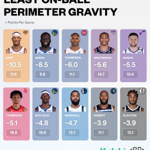 本赛季持球引力最差的球员定义:在离篮筐20英尺以上的有球情况下,球员的平均防守压力高于预期。#nba#...